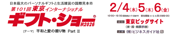【 展示会 】2026年2月4日(水)・5日(木)・6日(金)「第101回 東京インターナショナルギフトショー」へ出展します。 >>詳細はコチラ